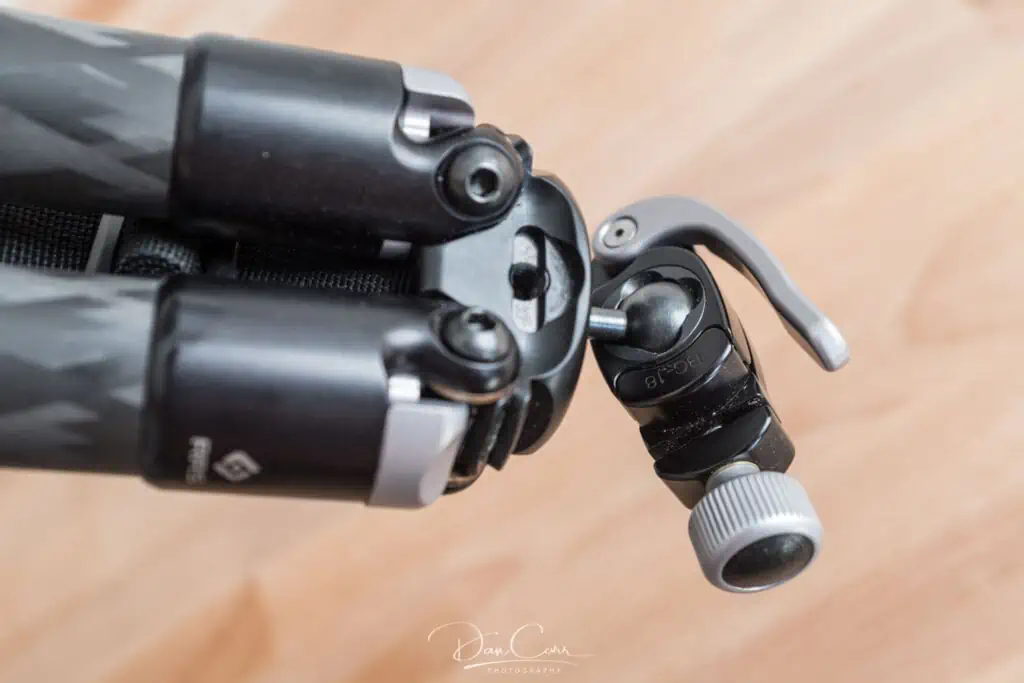 I used to use the RRS BH-30 ballhead on my TQC-14, but there is a lighter weight option called the BC-18 Microball which is really quite unique. This little thing isn’t like a conventional ballhead and it lacks some of the movement of a regular ballhead, but more than makes up for it with its diminutive size and weight. The most important thing to know about it is that you can’t “flop” the head over at 90 degrees because it only has about 45 degrees of tilt available in every direction. In order to take a photo in portrait orientation you need to be using an L-bracket on your camera (see photos). I have L-brackets on all my cameras, so this isn’t a big deal. The BC-18 can hold a truly staggering amount of weight for its size. I’ve used everything up to my gigantic Canon 200-400 f/4 L IS, which is one of the heaviest supertelephoto lenses on the planet! I certainly trust it with a pro DSLR setup of practically any size.